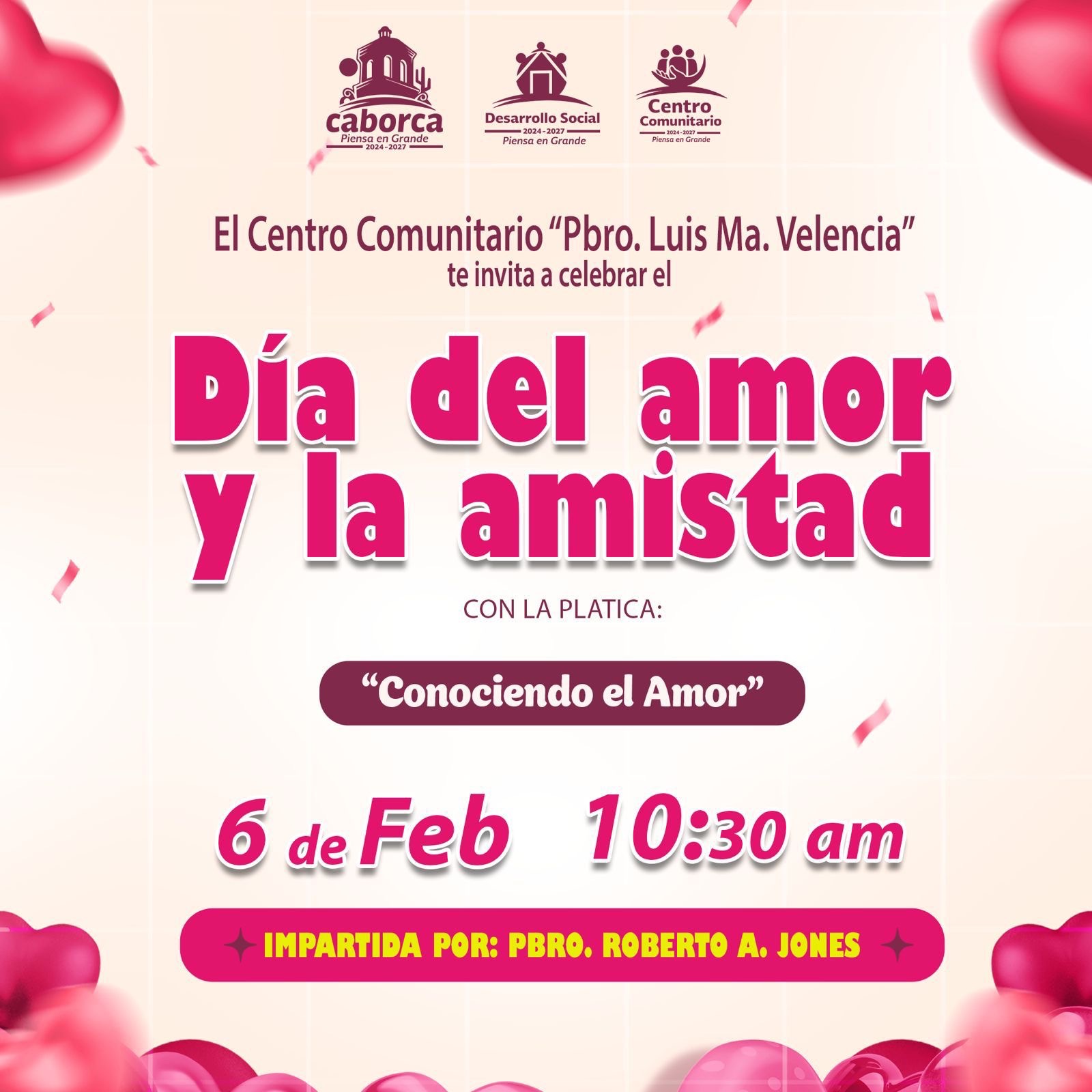 H. Caborca. – En el marco de la conmemoración del Día del Amor y la Amistad, el H. Ayuntamiento de Caborca, a través de la Dirección de Desarrollo Social y el Centro Comunitario “Pbro. Luis María Valencia”, invita a participar en la plática titulada “Conociendo el Amor”, un espacio de reflexión enfocado en el fortalecimiento […]