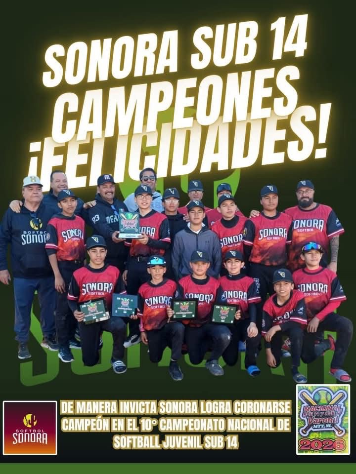 H. Caborca. – Con una destacada participación, Caborca reafirma su posición como potencia nacional en el sóftbol, luego de que las selecciones de Sonora en las categorías U-14 y U-17, integradas en su mayoría por talento caborquense, se coronaran campeonas nacionales de manera invicta en el Décimo Campeonato de Sóftbol Juvenil, celebrado el pasado fin de semana en la ciudad de Monterrey, Nuevo León.