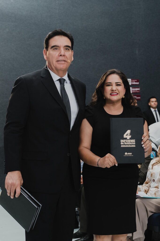 Ante un Auditorio Municipal completamente lleno, el alcalde agradeció la participación de todos los sectores de la comunidad, pues estos logros han sido posibles gracias al apoyo de todos, al trabajo en equipo y a una visión de futuro bien estructurada y en orden. Y como ya es costumbre en los Informes de Gobierno del “Cubano” Mier, el alcalde reconoció la trayectoria de 3 personalidades de Caborca, quienes con su ejemplo y lucha diaria, han contribuido al desarrollo y bienestar de la comunidad: Luz del Carmen García Fierros, Martín León Lizárraga y Alejandro Aguilar Noriega.