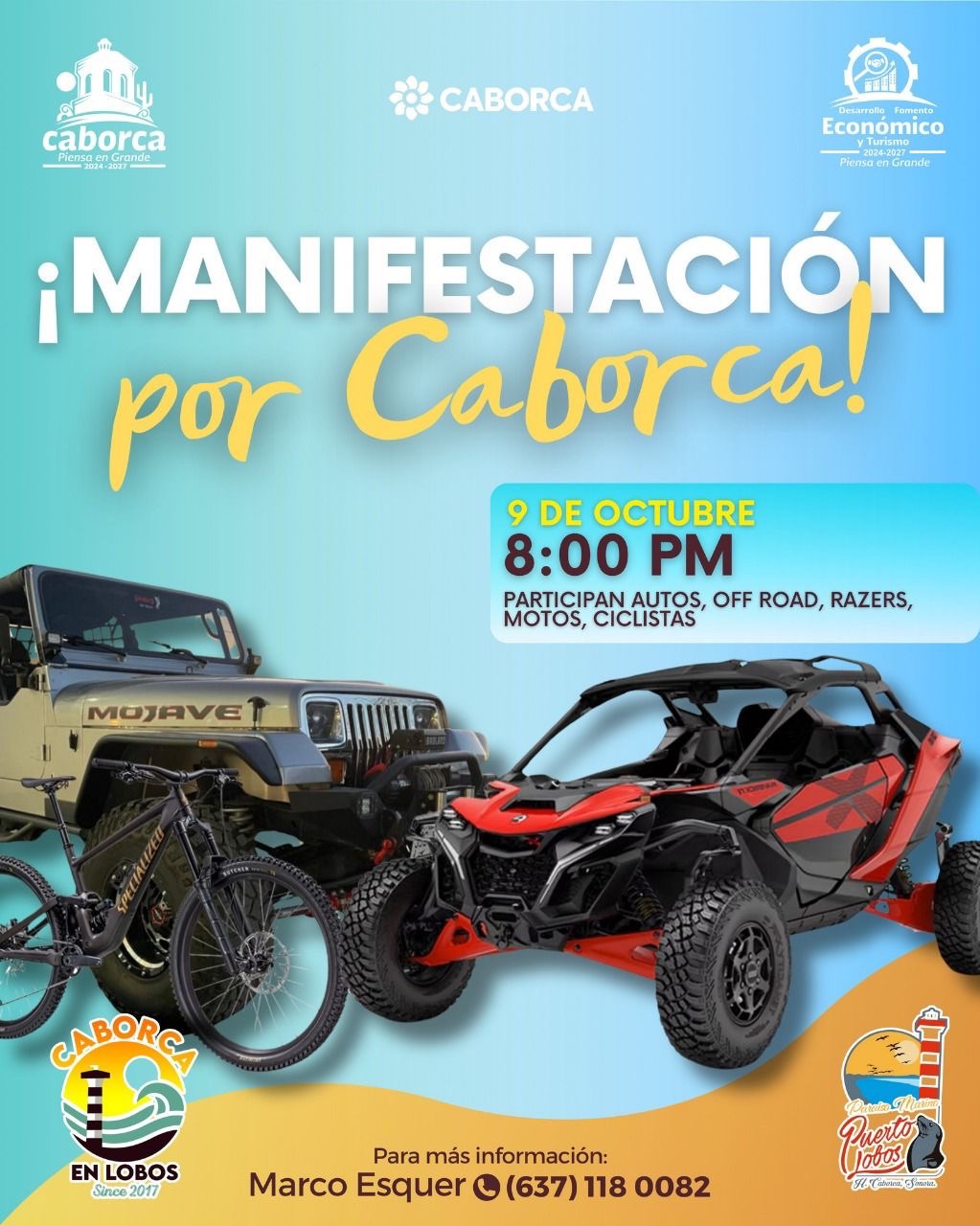 H. Caborca. – Hoy jueves, 9 de octubre, dan inicio oficialmente las actividades del evento más esperado del año “Caborca en Lobos 2025”, con la tradicional Manifestación por Caborca.