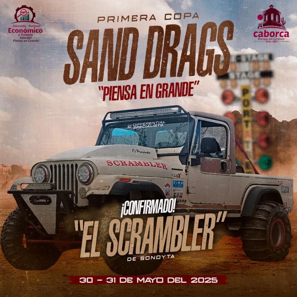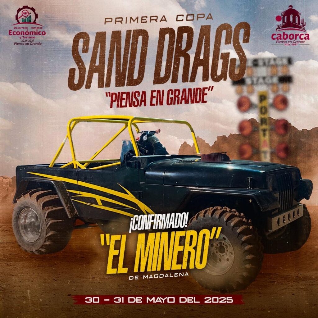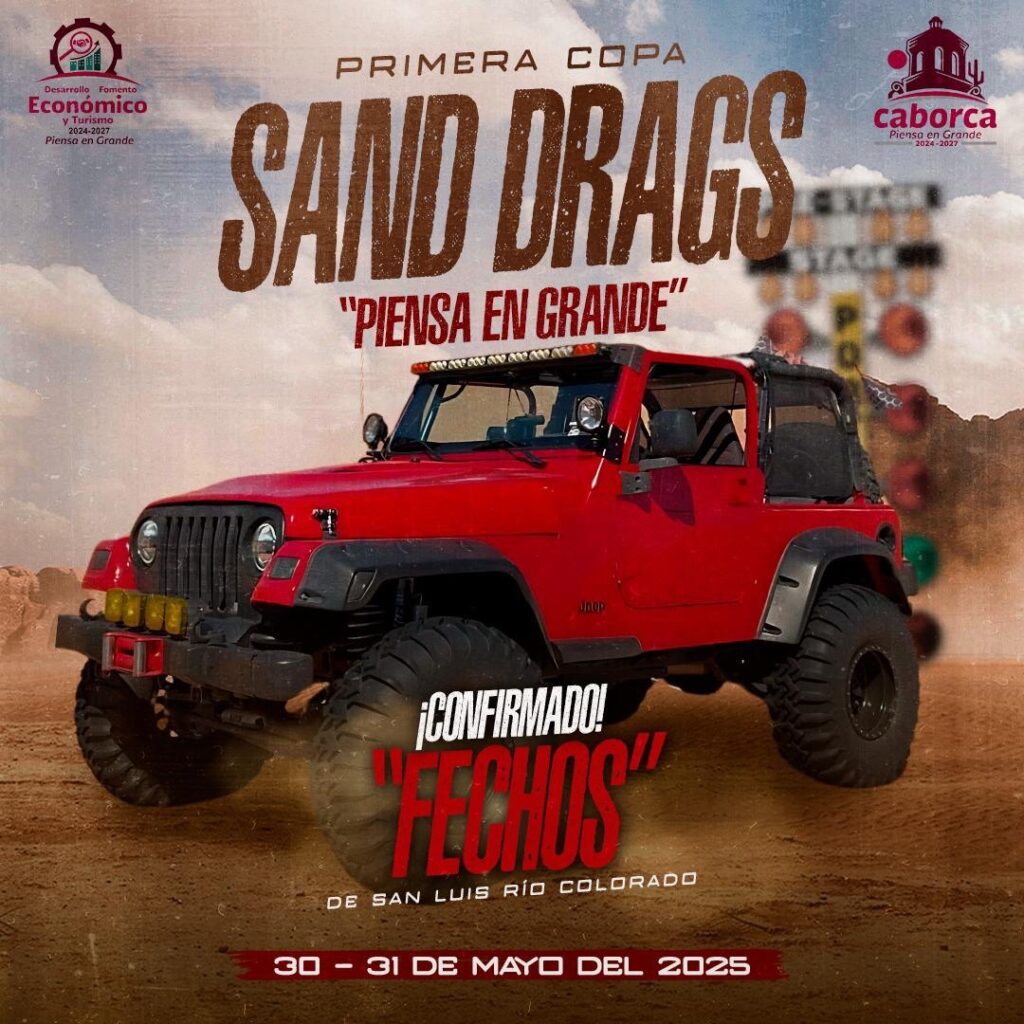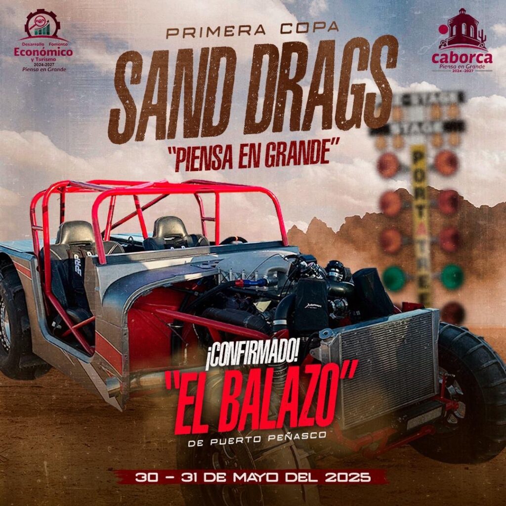 H. Caborca. – Ya fueron presentados más de 32 de los potentes vehículos que competirán este sábado 31 de mayo en la Primera Copa Sand Drags “Piensa en Grande 2025”.